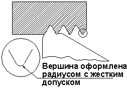 Рис. 5 Нарезание резьбы с вершиной, оформленной радиусом (вершина резьбы обязтельно формируется полнопрофильным резьбообрабатывающим инструментом) профиля не только по сторонам, впадинам, но и вершинам зубьев. Обеспечить эти требования можно только при использовании инструмента с полным профилем. На рис. 5 это проиллюстрировано для случая треугольной резьбы. В случае нарезания трапецеидальной резьбы требования к инструменту еще жестче, так как необходимо обеспечить точное сопряжение профиля в местах сопряжения радиуса и наружного диаметра. Если внимательно ознакомиться с допусками на элементы профиля резьб, приведенные в приложении и учесть, что допуски на инструмент в ряде случаев жестче, то становится понятно, что изготовление такого инструмента без применения специального оборудования, например, оптических профилешлифовальных станков практически невозможно. Именно поэтому для обработки резьб нефтяного сортамента всегда применялся специальный высокоточный инструмент, сначала импортный (американский), а с конца сороковых годов – отечественный. Этот вопрос кратко освещен в следующей главе. |