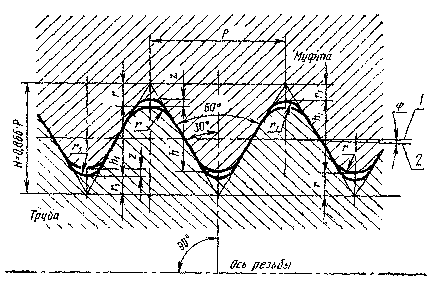 Параметры резьбы по ГОСТ 631 "Трубы бурильные с высаженными концами и муфты к ним"Параметры треугольной резьбы приведены на рисунке 1 и в таблице 1.